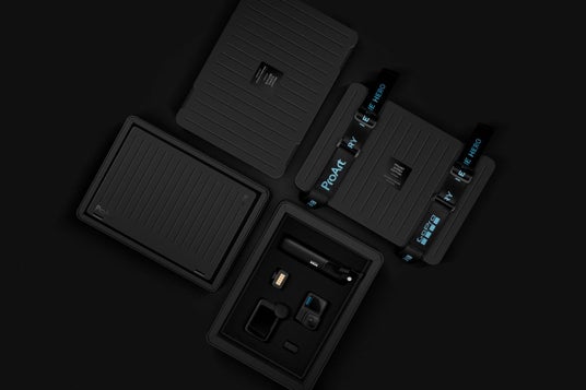 本体が収納されているボックスはカスタマイズ可能なガジェットケースとして使用することができ、細かく区切られた緩衝材をくりぬくことでお持ちのGoProデバイスや撮影に必要なアクセサリを収納し持ち運ぶことも可能です。