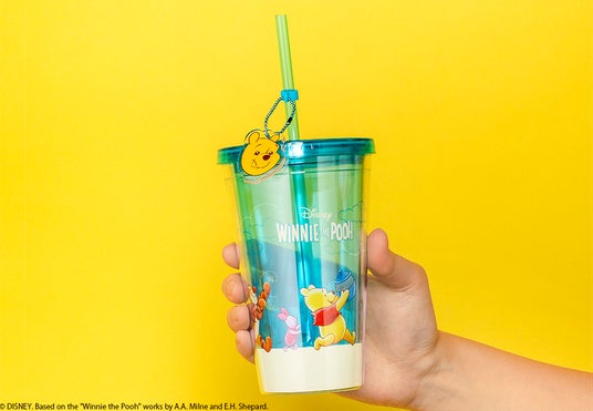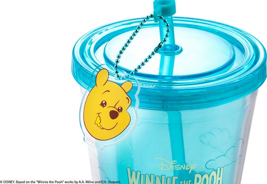 2つめは、夏にぴったりな透け感がたまらない『クリアタンブラー』。いつも一緒に冒険をしている仲間の「ピグレット」や「ティガー」と一緒にビーチをかけまわる「プーさん」を描いた、360°どこからみても可愛いデザインに仕上げました。ファニーフェイスがキュートなストローチャームがついて、細部までこだわりたっぷりです。