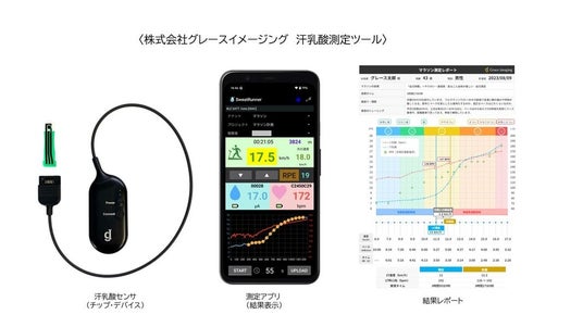 有酸素運動は「20分以上実施した方が良い」と言われていますが(※1)、実は人によって有酸素運動能力には違いがあります。 汗乳酸測定を行うことで、乳酸量の変化から適正な運動負荷(※2)を測定し、日々のトレーニング・コンディショニング調整などに役立てることができます。汗乳酸測定を実現する「汗乳酸センサ」は、・ 小型・軽量・非侵襲 ・ 乳酸量の変化を連続的に記録 ・ 結果を可視化、コメント入力 ・ センサチップ・デバイス・アプリだけで、いつでもどこでも簡単に測れます。