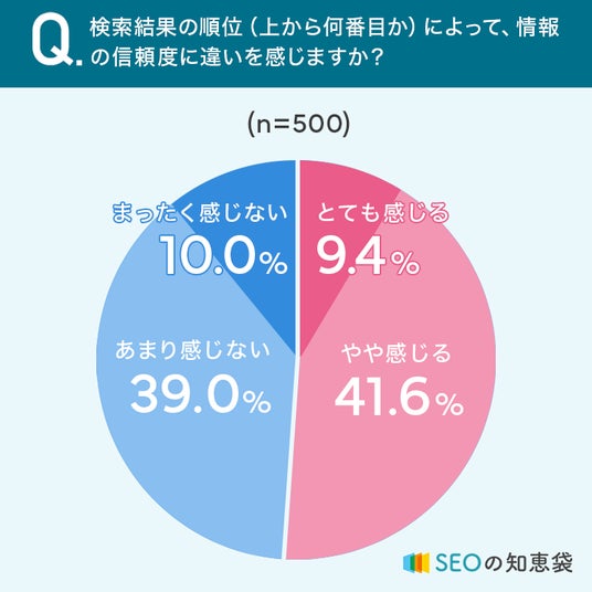 半数以上が検索結果の順位によって、情報の信頼度に「違いを感じる」と回答しています。