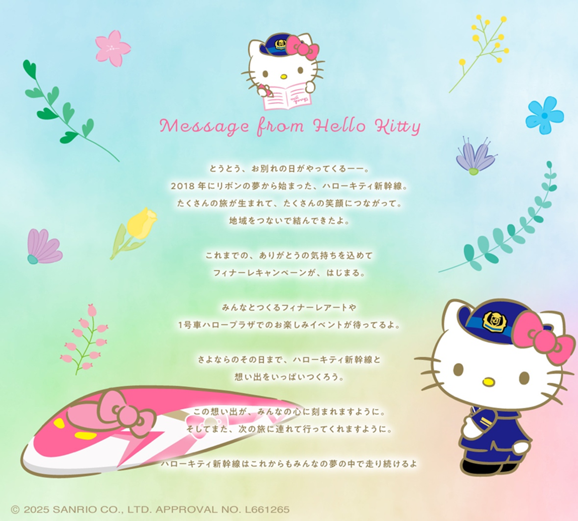 ※具体的な最終運行日は、決まり次第「ハローキティ新幹線」ホームページでお知らせします。