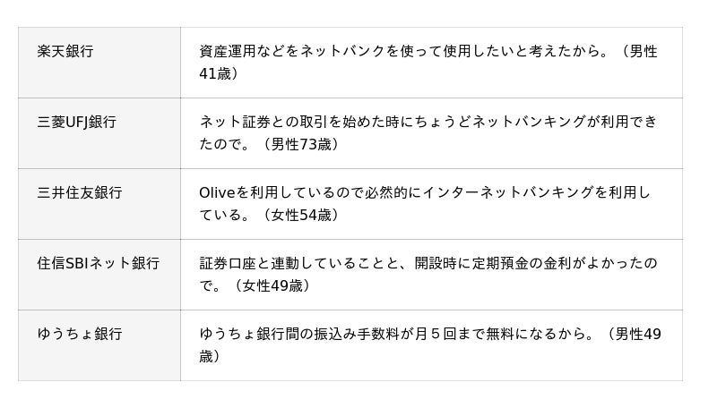 「ネットショッピングなどの決済」は『PayPay銀行』『楽天銀行』主利用者で、