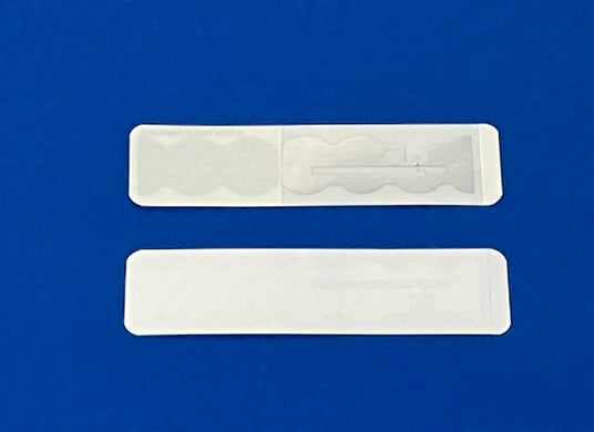本製品は、長距離通信でタグの一括読み取りができるUHF帯タイプで、通信距離が異なってしまう異素材のパッケージが密集している状態であっても安定的に数メートル単位の長距離通信が可能です。ラベルの一部を貼り付け、先端部分を突出させて使用します。医療製品の入出庫・棚卸業務などをスムーズに行い、医療医薬業界のDXに貢献します。