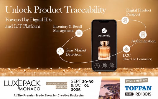 TOPPANデジタルは2019年から毎年「Luxe Pack Monaco」に出展し、最新のIoTソリューションを提案し続けてきました。この継続的な取り組みを通じて、欧州のラグジュアリーブランドとの間で、高セキュアなNFCタグ(真贋判定/開封検知)やID認証プラットフォームを活用した導入実績を多数積み重ねています。今回のTOPPANグループブース(ブース番号:RD13BIS)では、これらの実績で培ったノウハウを活かし、化粧品・香水ブランドが抱える個品のトレーサビリティや店舗内の在庫管理、デジタルプロダクトパスポート(DPP)(※1)といった課題を解決する、実践的なデジタルソリューションを紹介します。