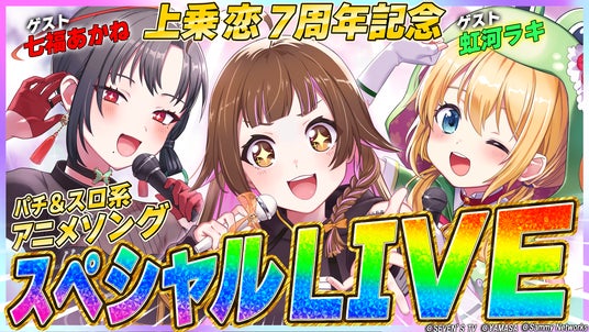 7周年を記念して、上乗恋のYouTubeチャンネル「上乗恋/RENCHANNEL」にて、パチンコ・パチスロで使用されている大人気楽曲のスペシャルLIVEを生配信します。