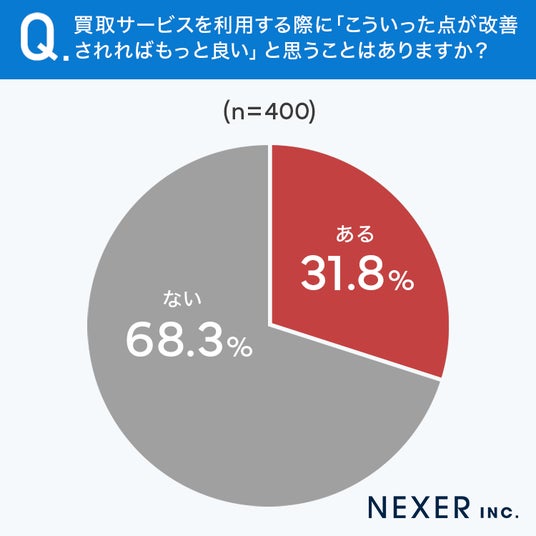 ■31.8%が、買取サービスを利用する際に「こういった点が改善されればもっと良い」と思うことは「ある」