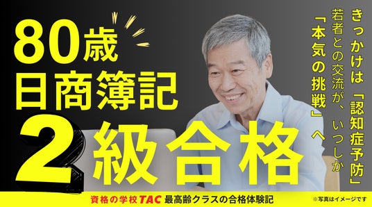 日商簿記検定対策講座を展開しているTAC株式会社(東京都千代田区、代表取締役:多田敏男)は、この度、80歳の受講生が日商簿記検定2級に合格されたことを発表いたします。当初は「認知症予防」を目的に受講を開始されましたが、若年層との交流や自身の経験を活かしたいという思いから学習意欲が向上。80代という年齢の壁を、驚異的な反復学習と熱意で乗り越えました。人生100年時代の「学び直し」のモデルケースとして、ご本人の学習法と合格体験記を公開いたします。