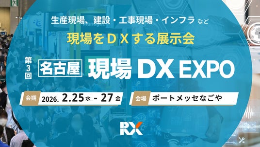RX Japan合同会社(本社:東京都中央区、代表執行役員社長:田中岳志)は、2026年2月25日(水)~27日(金)、ポートメッセなごやで、140社*¹が出展する中部地方最大級のDX総合展「Japan DX Week【名古屋】2026」内にて、「【名古屋】第3回 現場DX EXPO」を開催いたします。