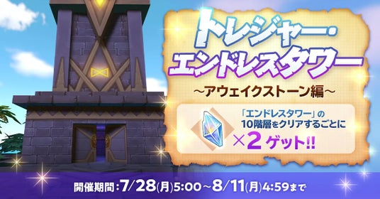 ダンジョン「エンドレスタワー」では、10階層をクリアするごとに追加報酬が獲得できる「アウェイクストーン編」と「シャドウ編」をそれぞれ2週間ずつ開催いたします。
