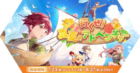 新たに実装された「襲来!滅世の時空竜!」を、さらに満喫できるよう、キャラクター育成や強化をサポートする「行くぜ!真夏のアドベンチャー」を、期間限定で開催いたします。