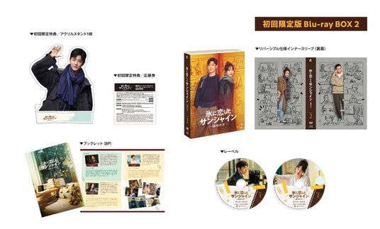 初回限定版には、通常版の特典に加え、BOX1にはチェキ風ビジュアルカード2枚と全巻を収納できるアウターケース、BOX2にはアクリルスタンド、BOX3にはサイン(印刷)入りL判ブロマイド1枚がそれぞれ封入されている。