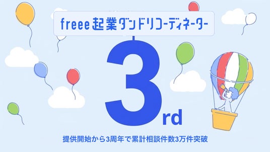 フリー株式会社(本社:東京都品川区、CEO:佐々木大輔、以下「freee」)が提供する「起業家ダンドリコーディネーター」は、提供開始から3周年を迎え、累計相談件数が3万件を突破したことをお知らせします。