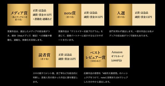 詳細は、特設サイト(https://note.com/creative-award)をご覧ください。