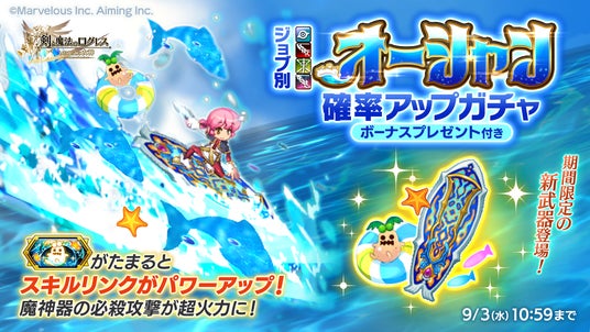 株式会社マーベラス(代表取締役社長:照井 慎一/所在地:東京都品川区)は、スマートフォン向け本格オンラインRPG『剣と魔法のログレス いにしえの女神』において、2025/8/6(水)に新武器がラインナップした「サポートジョブ別 イヴリースの魔神器確率アップガチャ」の販売、および「豪快!がいあジム」の開催などを含むアップデートを行ったことをお知らせいたします。