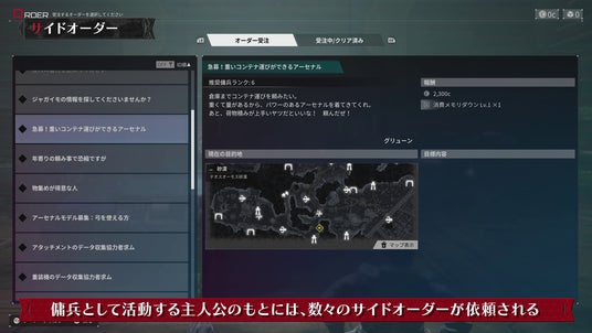 ストーリーのほかに、数々のサイドオーダーがプレイヤーへ依頼される。