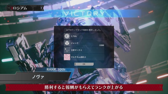 対戦相手に勝利すると、報酬を獲得できるとともに「コロシアム」でのランクが上がる。