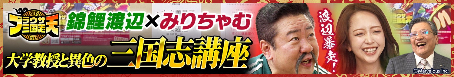 ■【錦鯉渡辺×みりちゃむ】大学教授と異色の三国志講座!ブラウザ三国志 天 特別番組