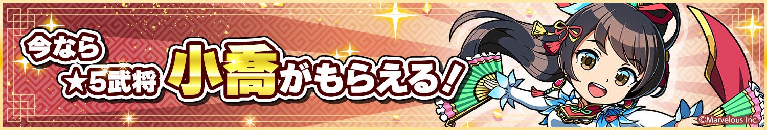 いま始めると【★5武将《小喬》】がワールドログイン時にログイン報酬としてお受け取りいただけます。詳しくはアプリ内をご確認ください。
