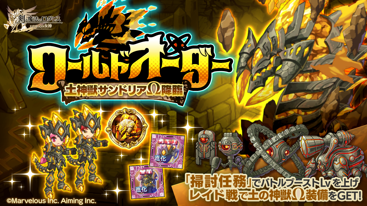 株式会社マーベラス(代表取締役社長:照井 慎一/所在地:東京都品川区)は、スマートフォン向け本格オンラインRPG『剣と魔法のログレス いにしえの女神』において、2025/10/29(水)に「ジョブ別 パナケイア確率アップガチャ」の販売、および「ワールドオーダー 土神獣サンドリアΩ降臨」の開催を含むアップデートを行ったことをお知らせいたします。