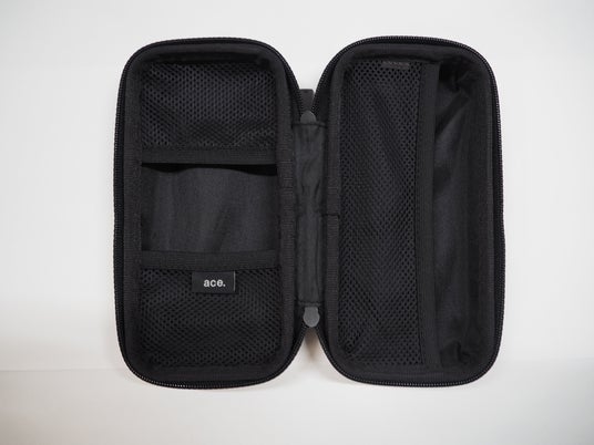 ガジェットやデバイスの収納に適した、スーツケースにも使用されるポリカーボネート製で耐衝撃性能に優れたハードポーチ。