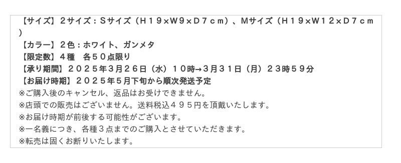 (Mサイズ:H19×W12×D7cm/カラー:ホワイト、ガンメタ)各・税込 5,610円