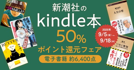 新潮社は、2025年9月5日(金)~2025年9月18日(木)までの約2週間、Kindleで新潮社の対象作品を購入すると、購入額の50%分のポイントが還元されるフェアを開催いたします。