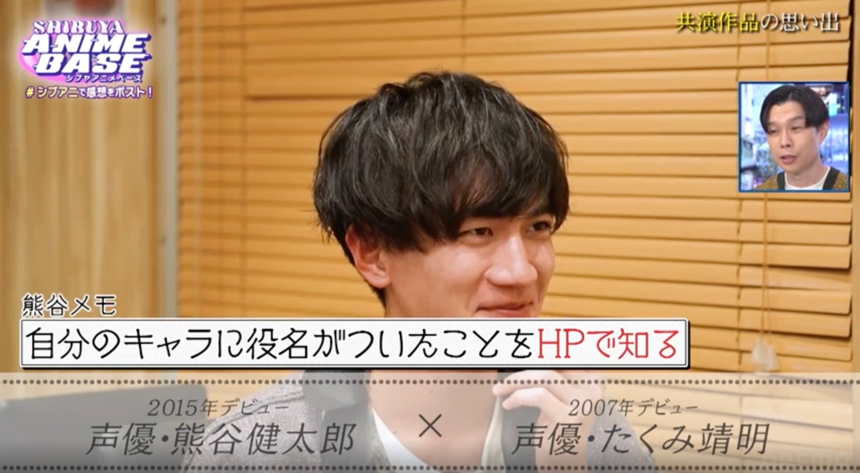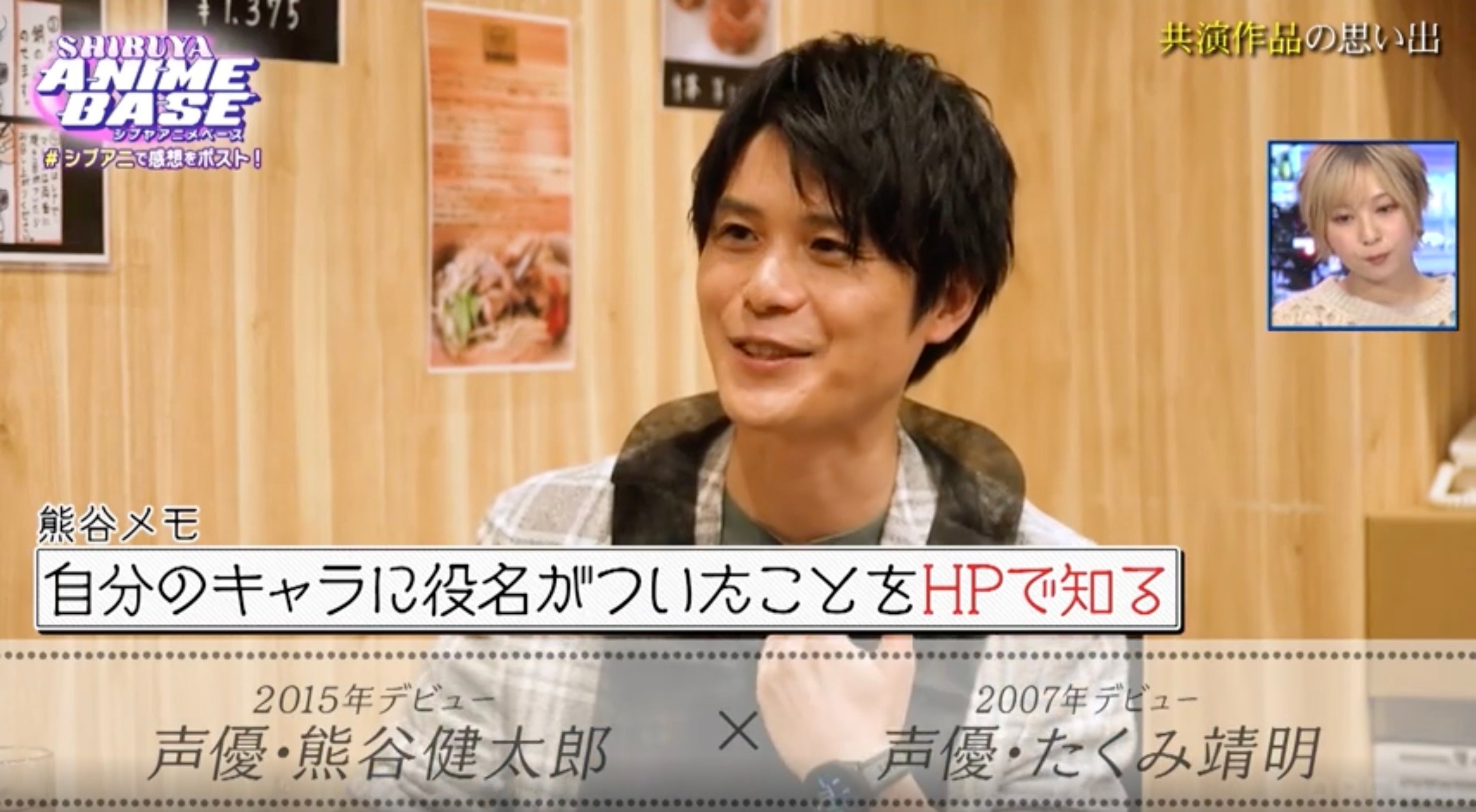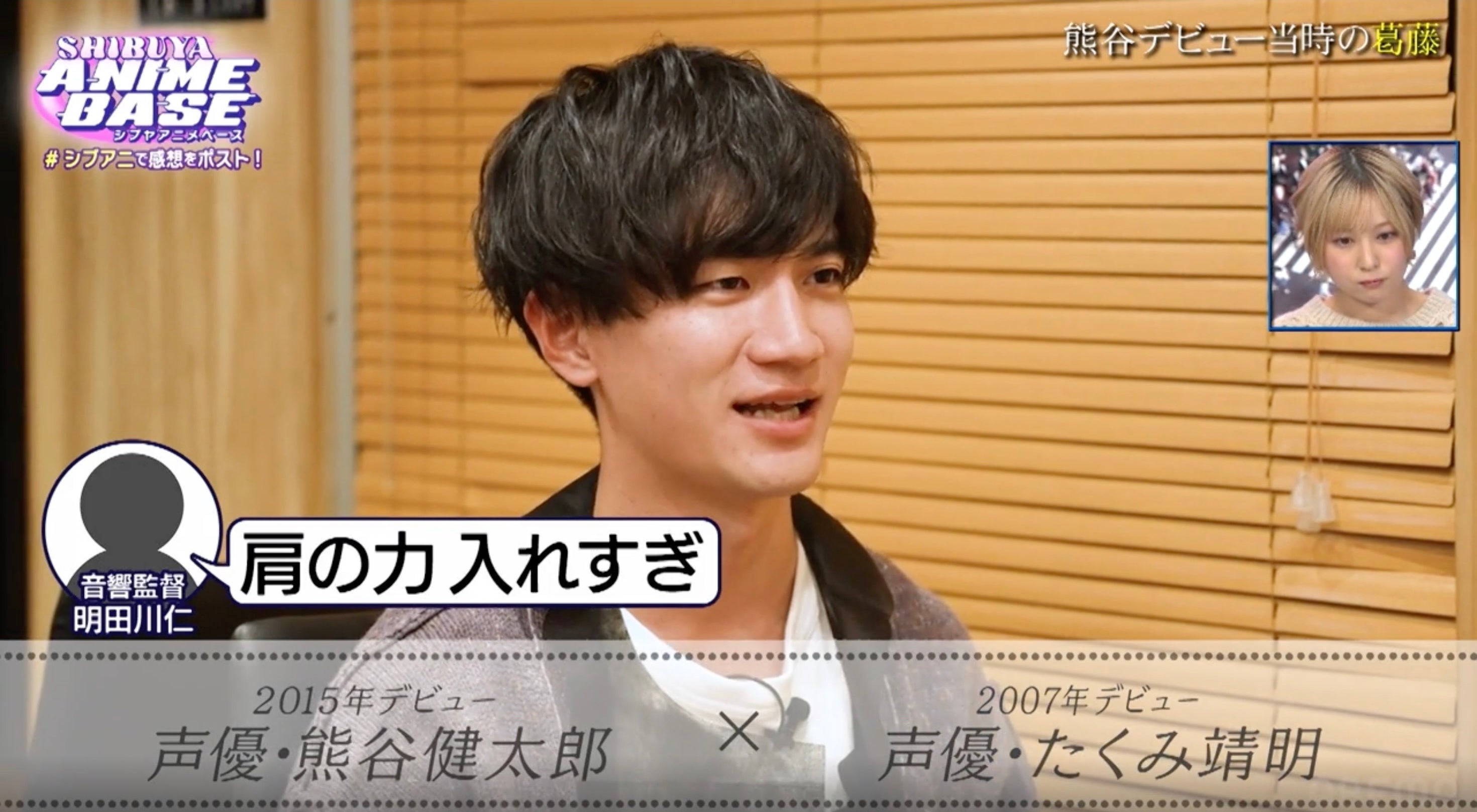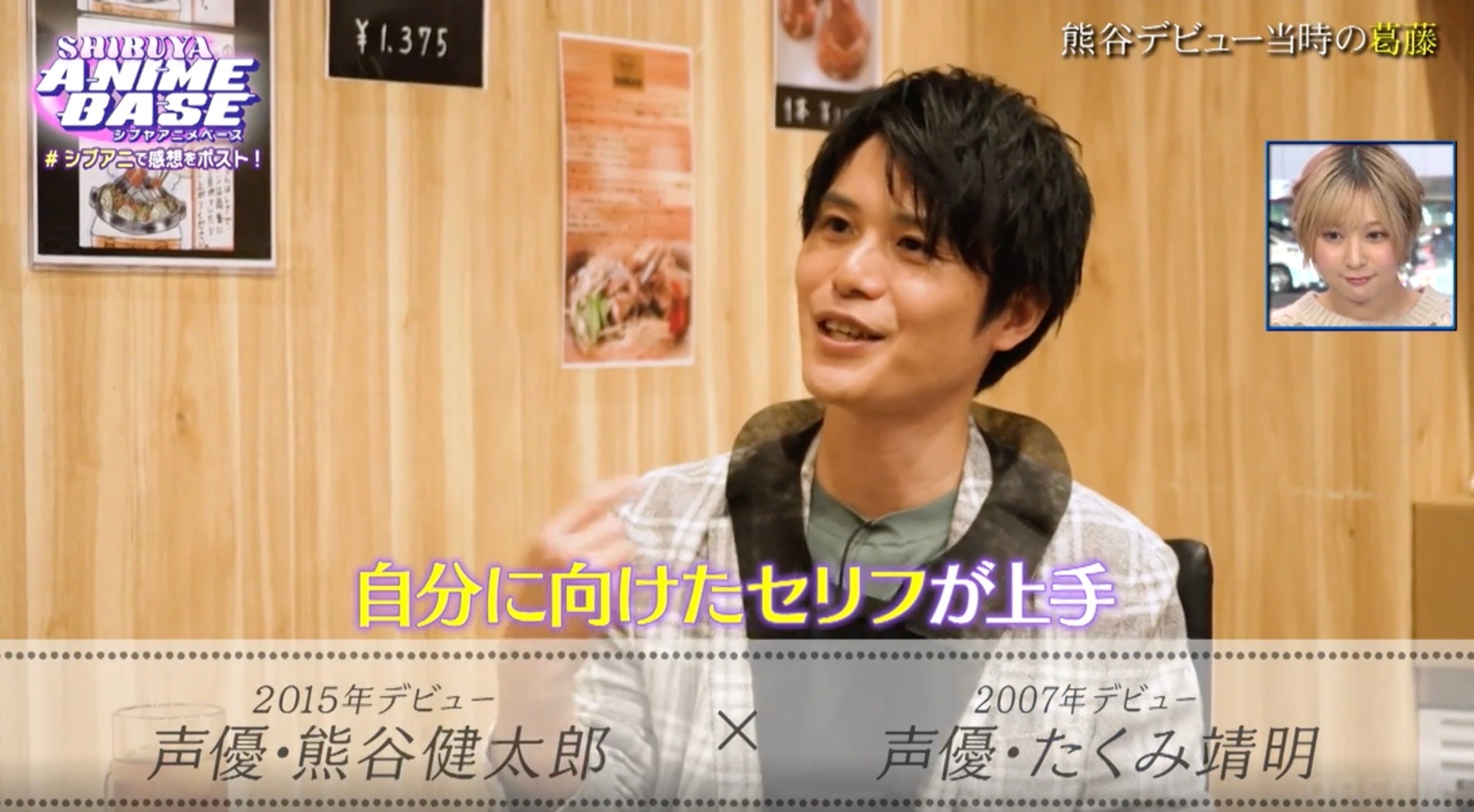 そんなデビューして間もない熊谷に演技の奥深さを教えたのは音響監督・明田川仁さんだったそうで、熊谷は「当時言われていたのは『かけすぎるな』って。かけすぎないって何!?っていうふうに陥っちゃったんですけど…」当時仁さんに肩の力入れすぎ、考えすぎって言われていて。肩の力抜くってなんだろうってすごい考えたことありました」「現場のリテイクに対応ができないくらい固まりすぎていたんですよね」と当時を振り返ります。一方、そんな熊谷をたくみは「分析・観察力が鋭い」「自分に向けたセリフが上手だよね」と評価しました。