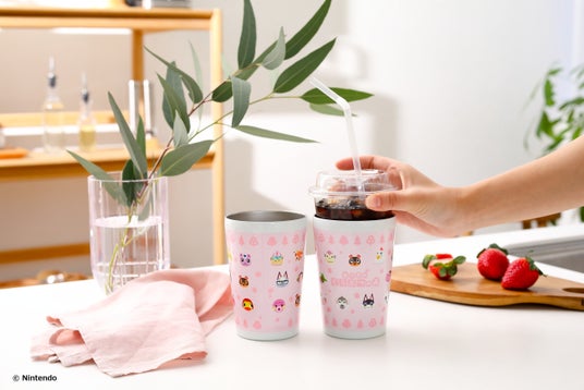 アイテムは、ポーチ2種と真空断熱タンブラー2種の計4種。『あつまれ どうぶつの森』らしい葉っぱ柄のキルティングがポイントの春色カラーのポーチは、まめきち&つぶきちの刺しゅうをあしらい、180度にガバッと開くポーチと日常使いしやすいスクエアポーチの形・色違いで展開します。真空断熱タンブラーは、さくらシーズンにぴったりな『さくらver.』が登場。キャラクターたちがぐるりと一周描かれたデザインで、なかにはさくらシーズンが誕生日の住民も。また、2023年の初登場からご好評いただいている『喫茶ハトの巣ver.』も再登場。おうちやオフィスで『喫茶ハトの巣』気分が味わえるタンブラーです。