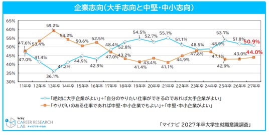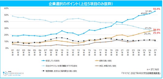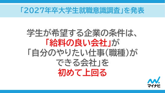 株式会社マイナビ(本社:東京都千代田区、代表取締役 社長執行役員:粟井俊介)は、2027 年卒業予定の全国の大学生、大学院生を対象に実施した、「2027年卒大学生就職意識調査」の結果を発表しました。