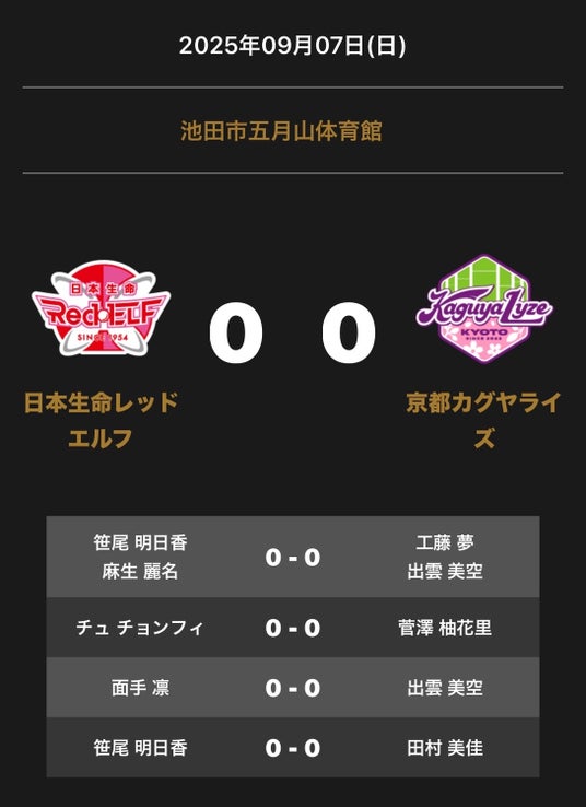 ノジマTリーグ 2025-2026シーズン 公式戦 9月7日開催 「日本生命レッドエルフ vs 京都カグヤライズ」の対戦オーダーを発表いたします。