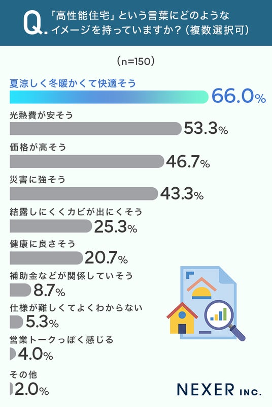 ■66.0%が高性能住宅に「夏涼しく冬暖かくて快適そう」というイメージ