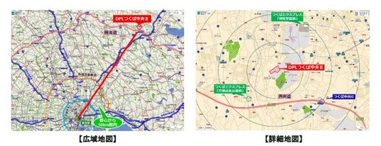 「DPLつくば中央II」は、都心部より直線距離で50km圏内に位置し、圏央道「つくば中央インターチェンジ」から約1.7km、常磐自動車道「矢田部インターチェンジ」から約5.8kmの場所に位置しています。