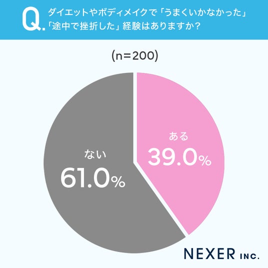 ■39.0%が「ダイエットやボディメイクで挫折した経験がある」と回答