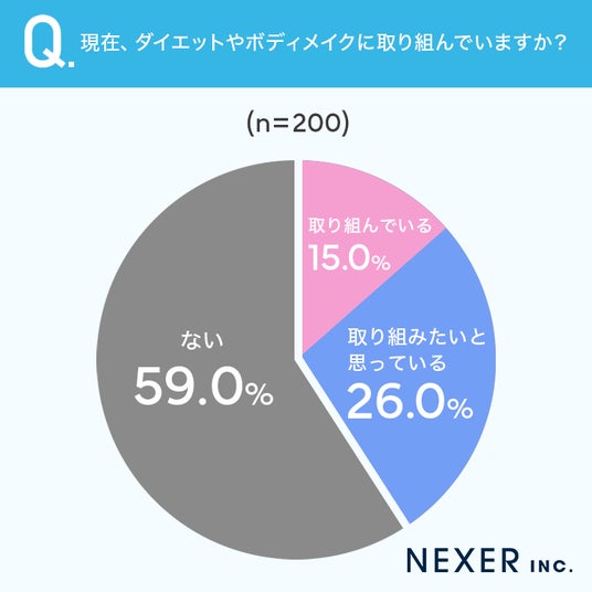 まず、現在ダイエットやボディメイクに取り組んでいるかどうかを聞いてみました。