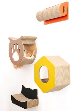 マグネットウォールを採用し、猫の性格や成長に合わせて位置を自由に調整できるキャットステップを設置しました。にゃんボールMAGに使用されている強化ダンボールは、丈夫で通気性も良い素材。一般的なダンボールよりも硬く、木よりも柔らかいため、猫が快適に過ごせる環境として適しています。さらに、キャットステップから天井のキャットウォークまで上ることもでき、家の中で長い時間を過ごす猫にも飽きのこない遊びの場を提供します。