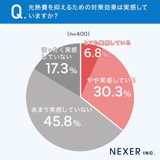 続いて、光熱費を抑えるための対策効果を実感しているかどうかを聞いてみました。