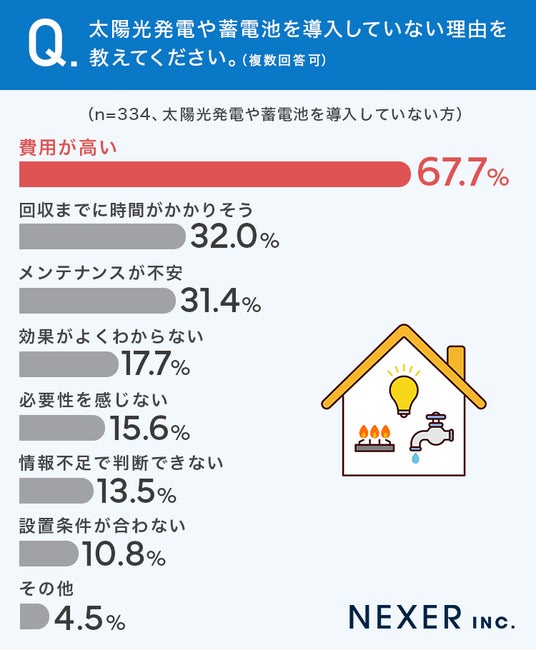 さらに、太陽光発電や蓄電池を導入していない方には、その理由を聞いてみました。