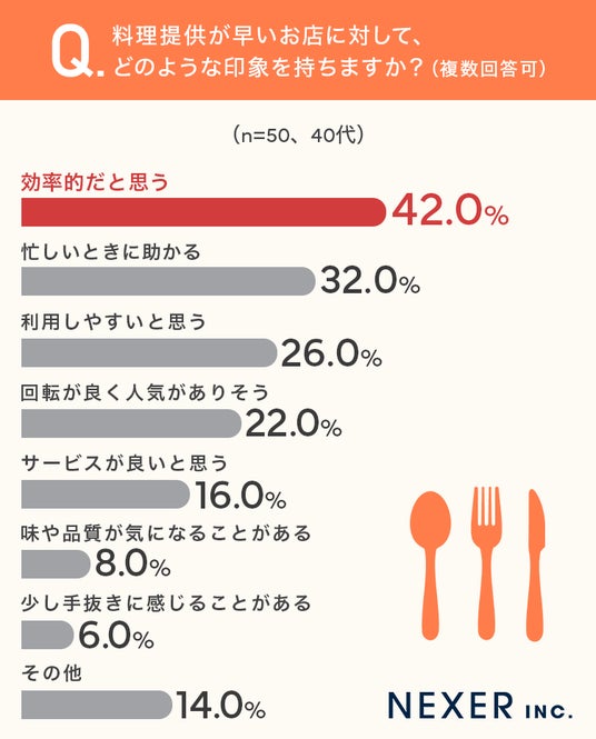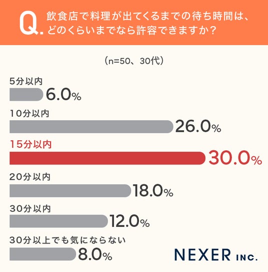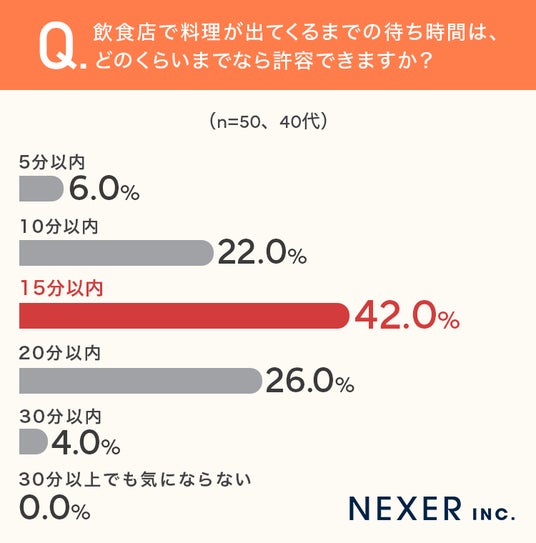 株式会社NEXER・飲食店の料理提供スピードに対する意識に関する調査