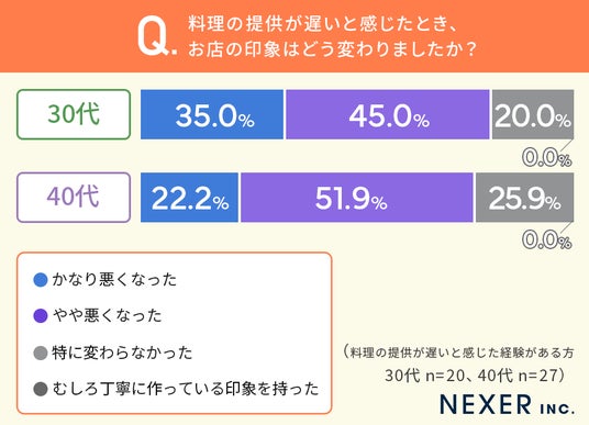 さらに、料理の提供が遅いと感じた経験がある方に、そのときお店の印象がどう変わったかを聞いてみました。