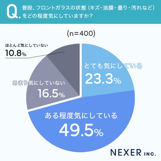 続いて、普段フロントガラスの状態(キズ・油膜・曇り・汚れなど)をどの程度気にしているかを聞いてみました。