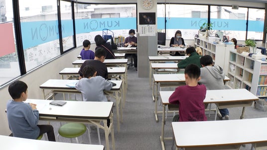 全国に教室を展開し、拡大し続ける「KUMONグループ」。その秘密を探るべく東京都内の教室を訪ねた。教室を見渡すと、黒板がなく、授業もしていない。子どもたちはそれぞれ与えられた問題を解いている。この自習形式の学習こそが公文式最大の特長だ。