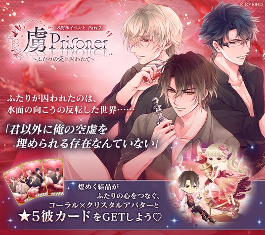 8周年イベント「虜Prisoner~ふたつの愛に囚われて~」Part2を、Part1に引き続き開催します。8周年の節目を飾る特別なイベントストーリーをぜひお楽しみください。