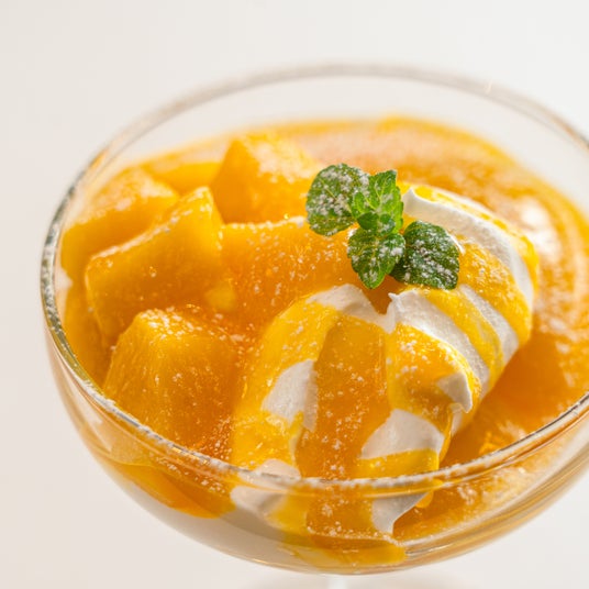 ■マンゴープリン(550円税込):滑らかな口当たりにホイップを添えた、贅沢な夏スイーツ。