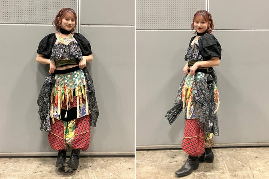 ショーの終盤では、大阪文化服装学院の学生達が手掛けたアップサイクル衣装をタレント・モデルの佐々木 莉佳子さんご本人に着用いただき登壇いただきました。今回、ご提供いただいた衣類素材は全10着です。大阪文化服装学院の学生達によって「今までにない新しい女性像になって欲しい」という想いを込めて「新しい自分」をテーマに、佐々木さん自身がお持ちの強くてかっこいい女性像と太陽の方を向いて育つ「ひまわり」要素をデザインに組み入れました。