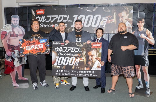新しい未来のテレビ「ABEMA(アベマ)」は、2026年4月11日(土)に開局10周年を迎えます。この節目を記念した特別番組『30時間限界突破フェス』の目玉企画、『ウルフアロンから3カウント取ったら1000万円』の全挑戦者を発表いたしました。