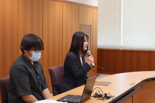 取り組み発表では、北山万由子さん(医学部6年)、三谷峻永さん(医学部4年)が登壇し、活動内容や、設立のきっかけを共有しました。北山さんは、「中高生の頃、体調不良で悩んでも周囲に相談できない経験があった。医学生になった今、若者に近い立場から医療情報を提供し、中高生の健康に関する知識や意識を高めたい」と語りました。