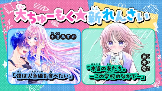 マンガは大好評につきパワーアップした禁断のラブストーリー『僕は人魚姫を食べたい』(小倉あすか)に、友だち関係で悩むすべてのちゃおっ娘に読んでほしい『本当の友だち-学校のなか-』(五木愛)が新れんさいとしてスタート!