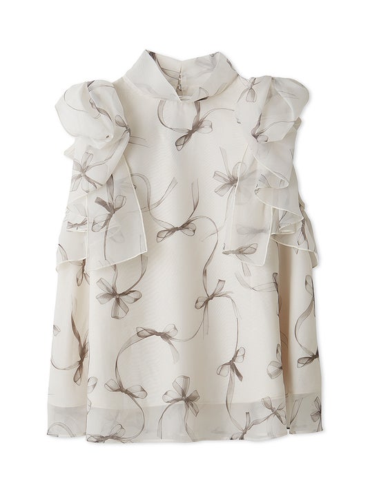 リボンスリーブオーガンシースルーBL