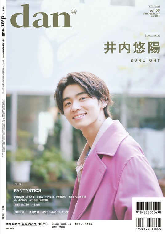 「TVガイド」、「TVガイドPERSON」などを発刊する東京ニュース通信社は、今を時めく若手俳優・ボーイズグループが一挙登場する最旬グラビア&ムービーマガジン「TVガイドdan vol.59」を2月10日(火)に発売いたしました。全国の書店、ネット書店にてご購入いただけます。また、2月18日(水)以降電子版も各電子書店で順次配信を予定しています。