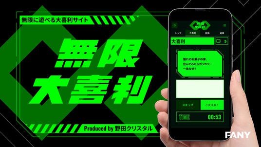 吉本興業グループの株式会社FANYは、マヂカルラブリー・野田クリスタルが発案・プロデュースした大喜利プラットフォーム「無限大喜利」のWebサイトを2025年4月24日(木)にオープンしました。本サービスは、吉本興業初の大喜利サイトで、スマートフォンやPCなどから、どこでも誰でも気軽に楽しむことができます。大喜利を通じてコミュニケーションを取ることができる、”笑いでつながる”サービスを目指しています。